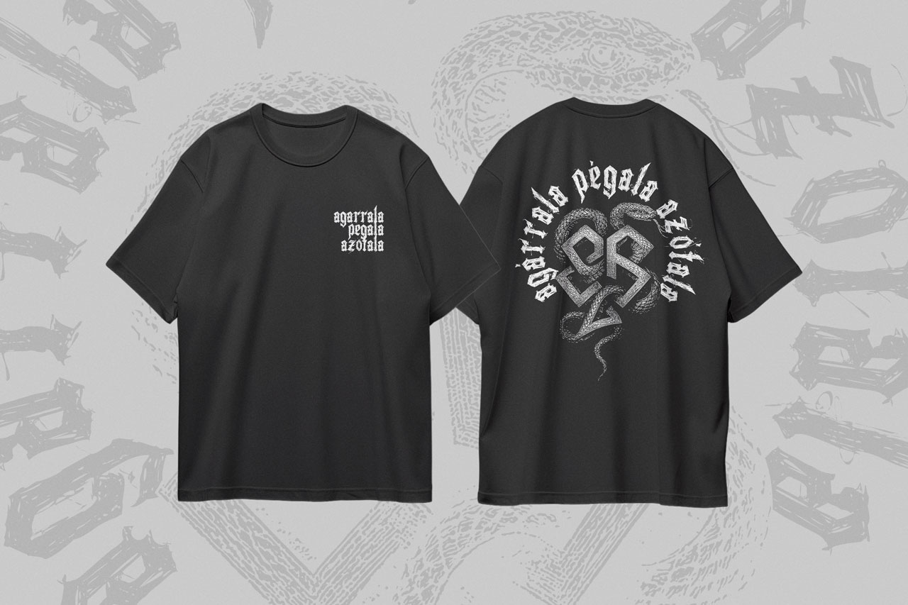 La parte trasera presenta una poderosa ilustración con una serpiente envolviendo el símbolo icónico, flanqueada por la frase que marcó a una generación. Todo el diseño ha sido elaborado por el artista urbano Drezen, combinando tipografía gótica, detalle visual y actitud callejera. Ideal para verdaderos fans, coleccionistas y quienes viven el reguetón como cultura.